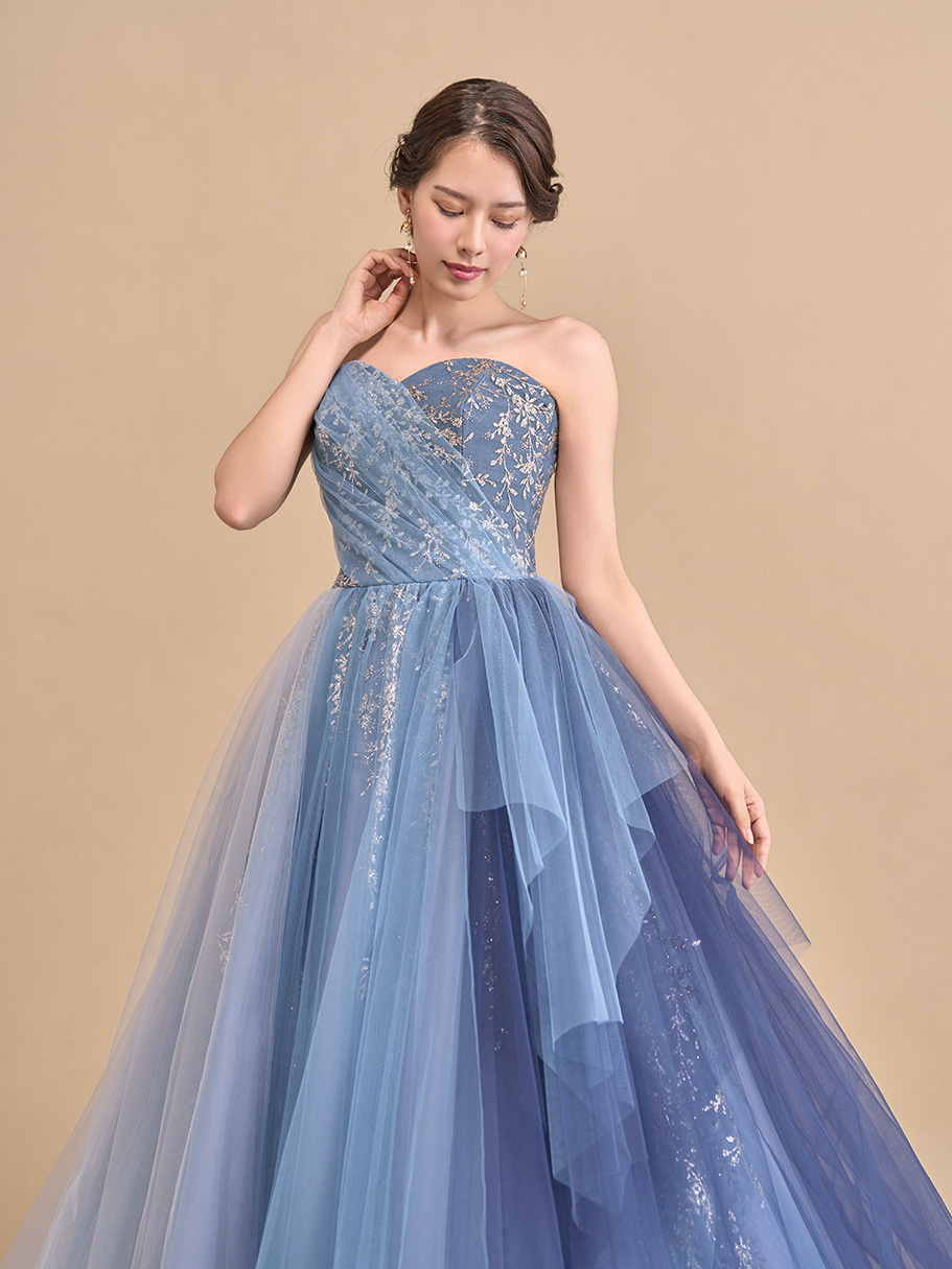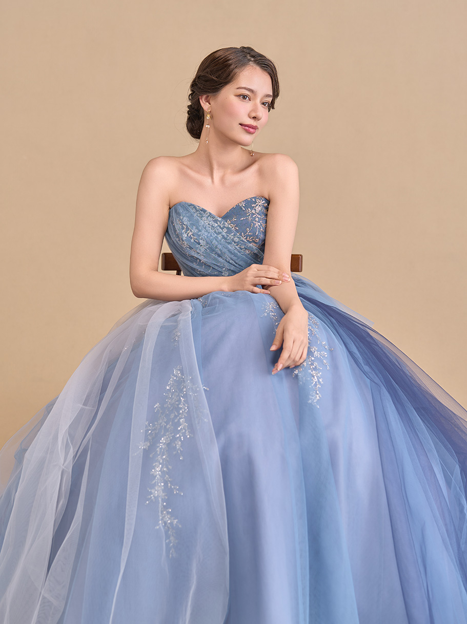 軽やかなチュールを幾重にも重ねたグラデーションが美しいドレス。