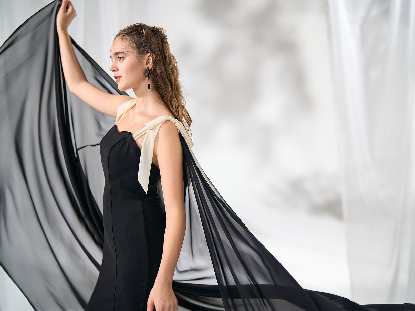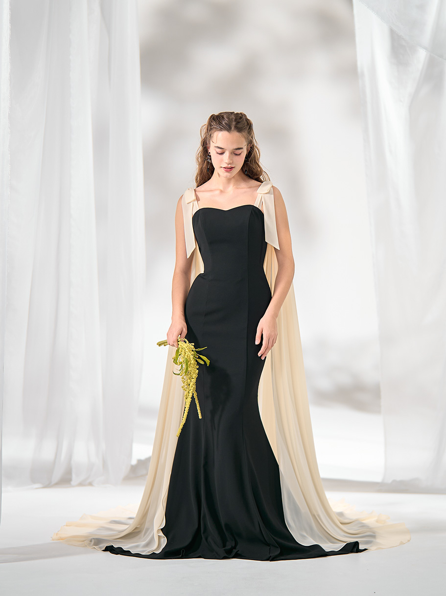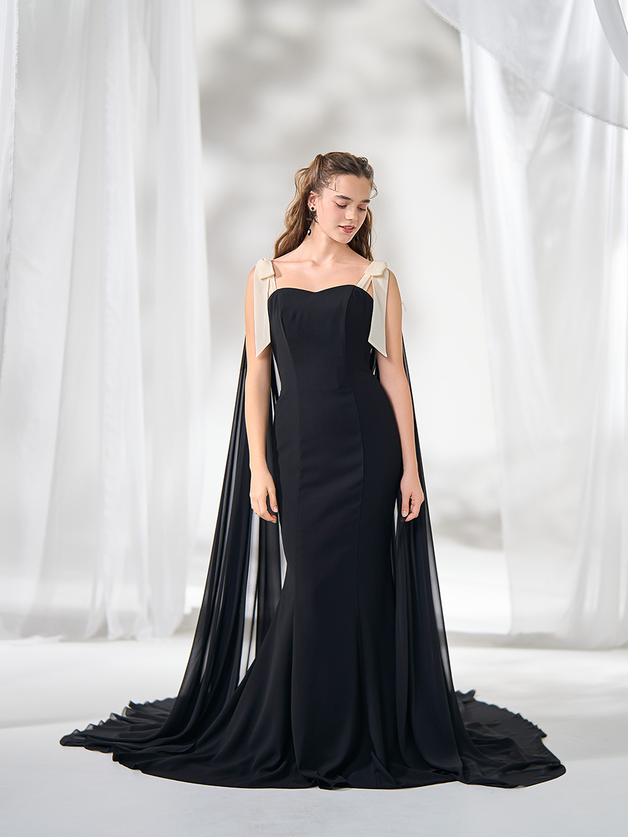 しなやかで美しいソフトマーメイドラインのブラックドレス。