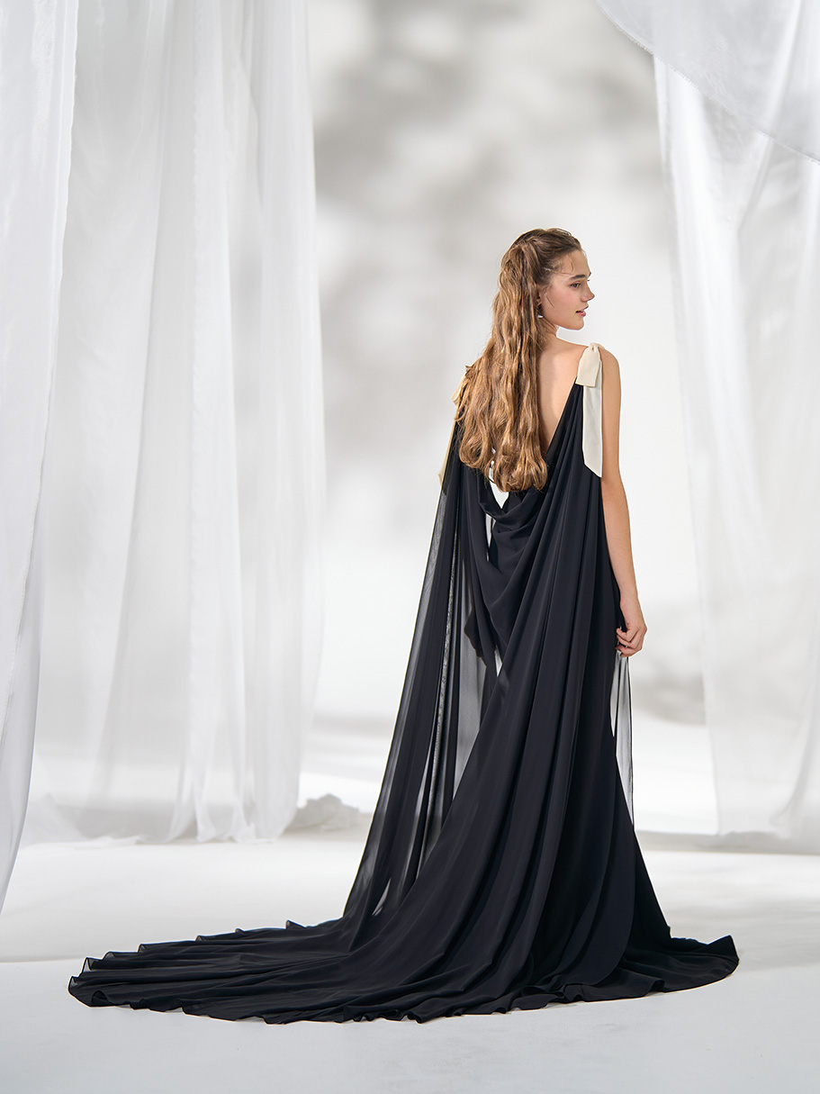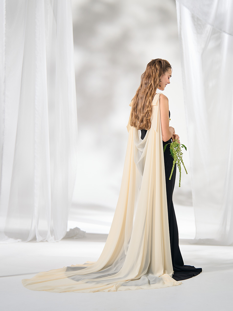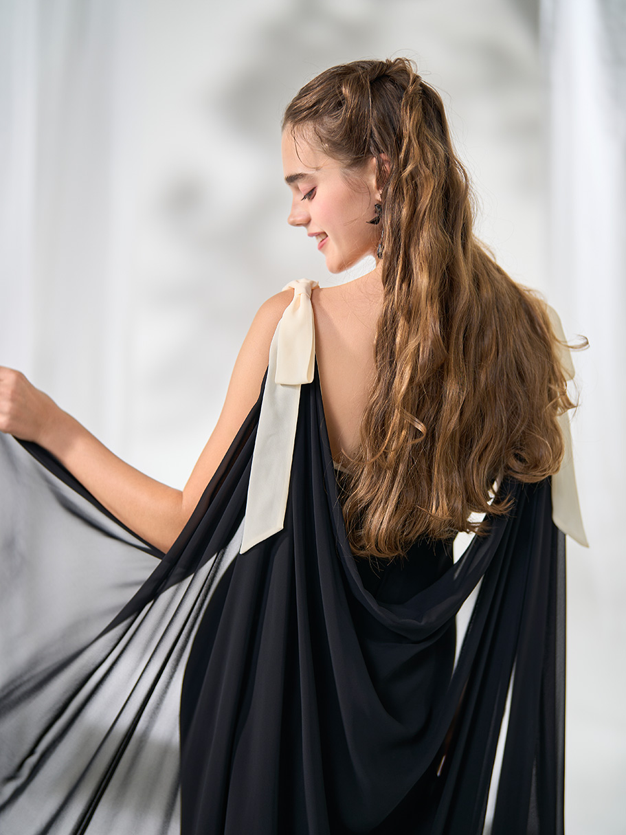 しなやかで美しいソフトマーメイドラインのブラックドレス。