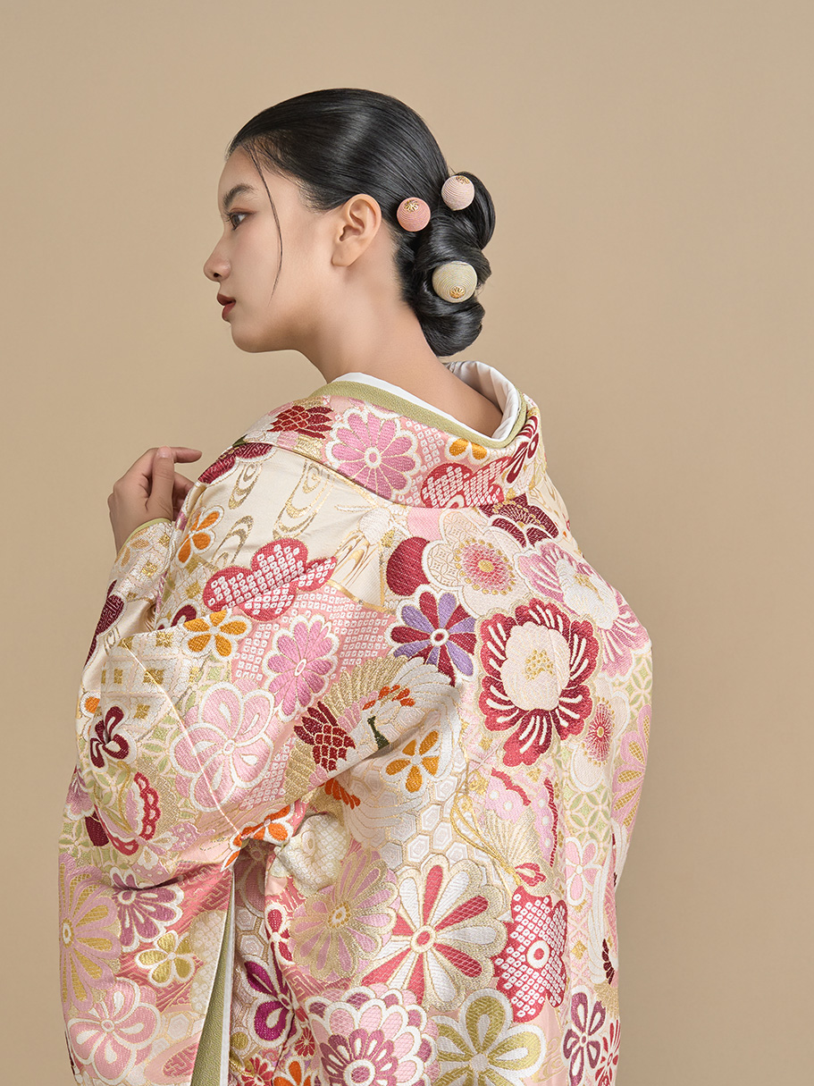 願いが込められた蝶が優雅に舞う、可憐で華やかな一着。