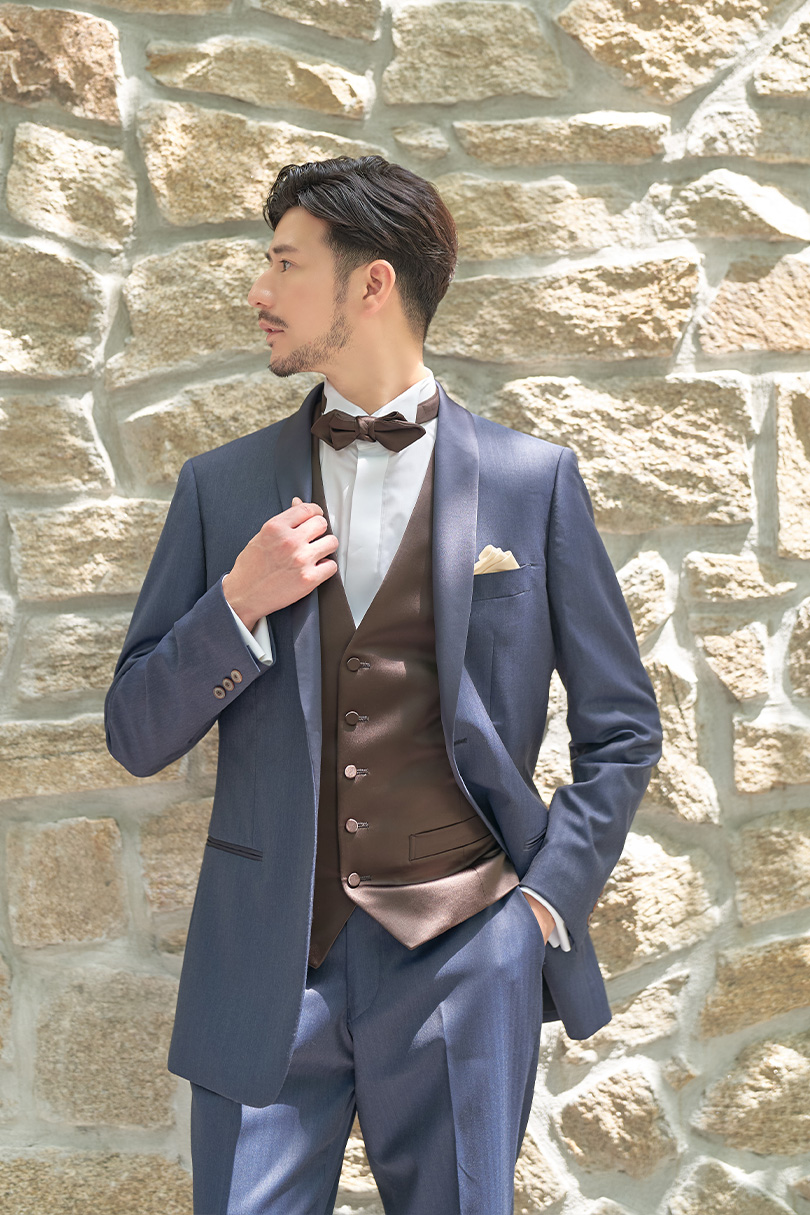 深みのあるブルーグレーが、おしゃれなフォーマル感を醸し出してくれます。