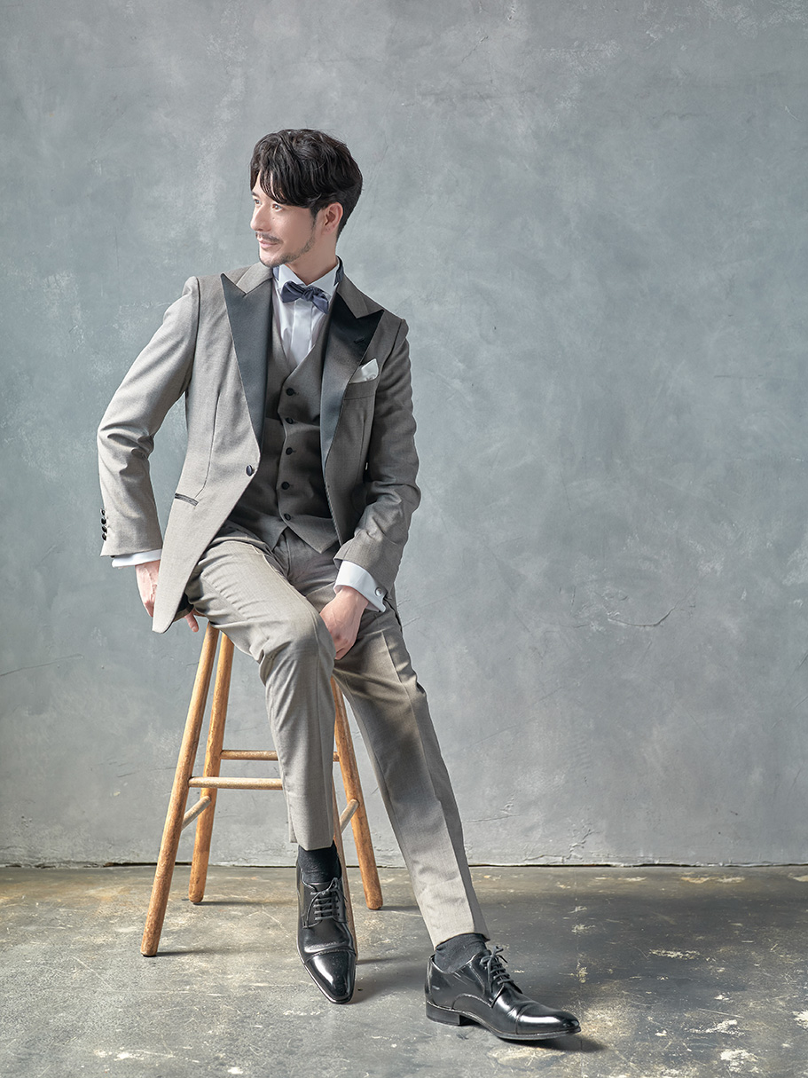 イタリア製の滑らかで肌触りの良い生地を使用したグレータキシード。
