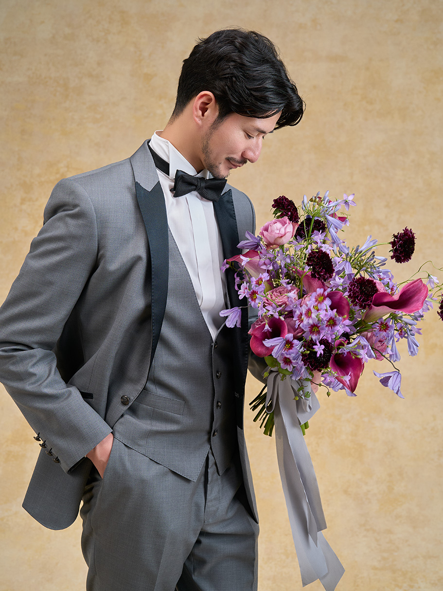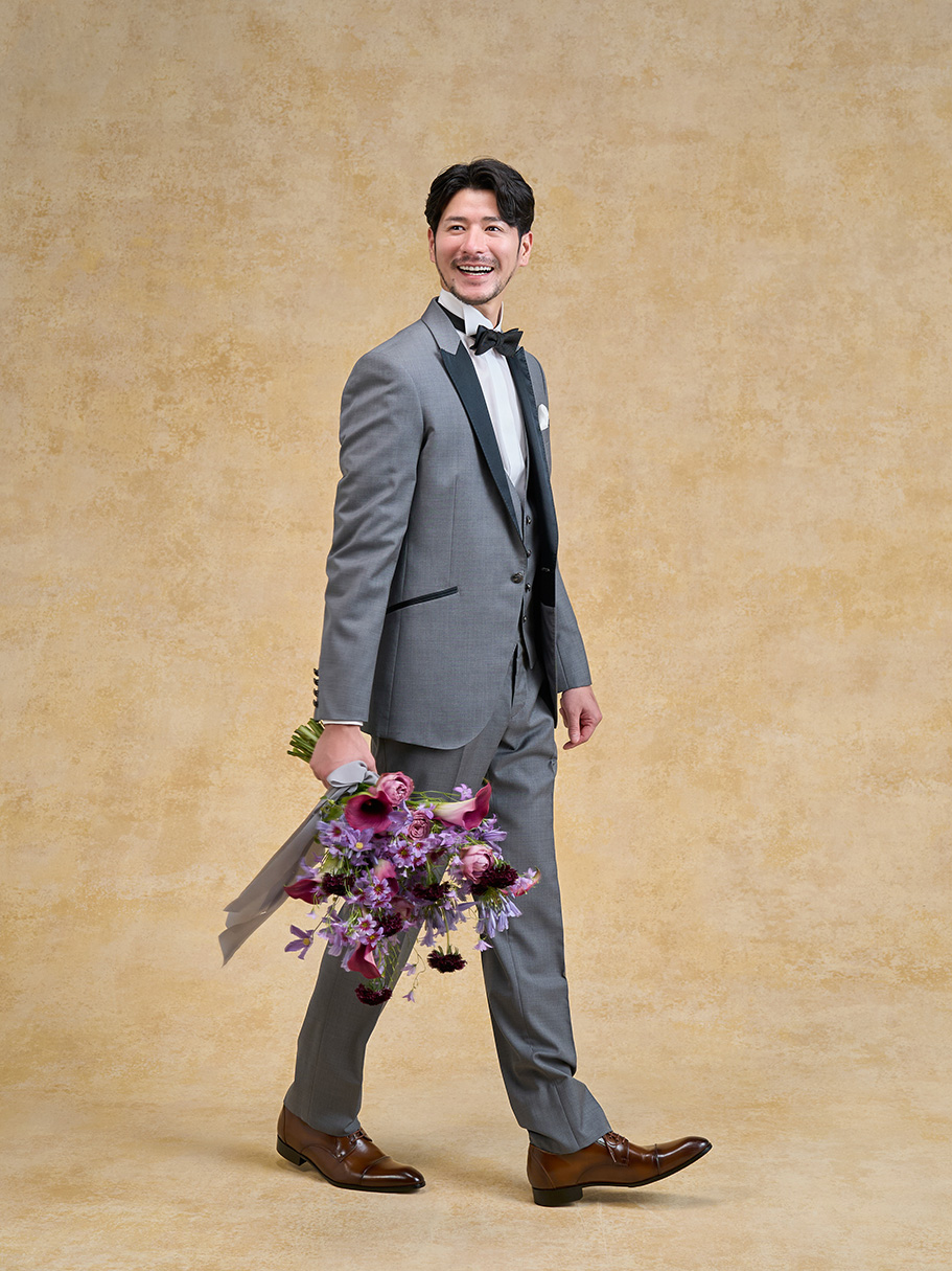 ボディラインを最大限に美しく魅せるシルエットが特徴のタキシード。