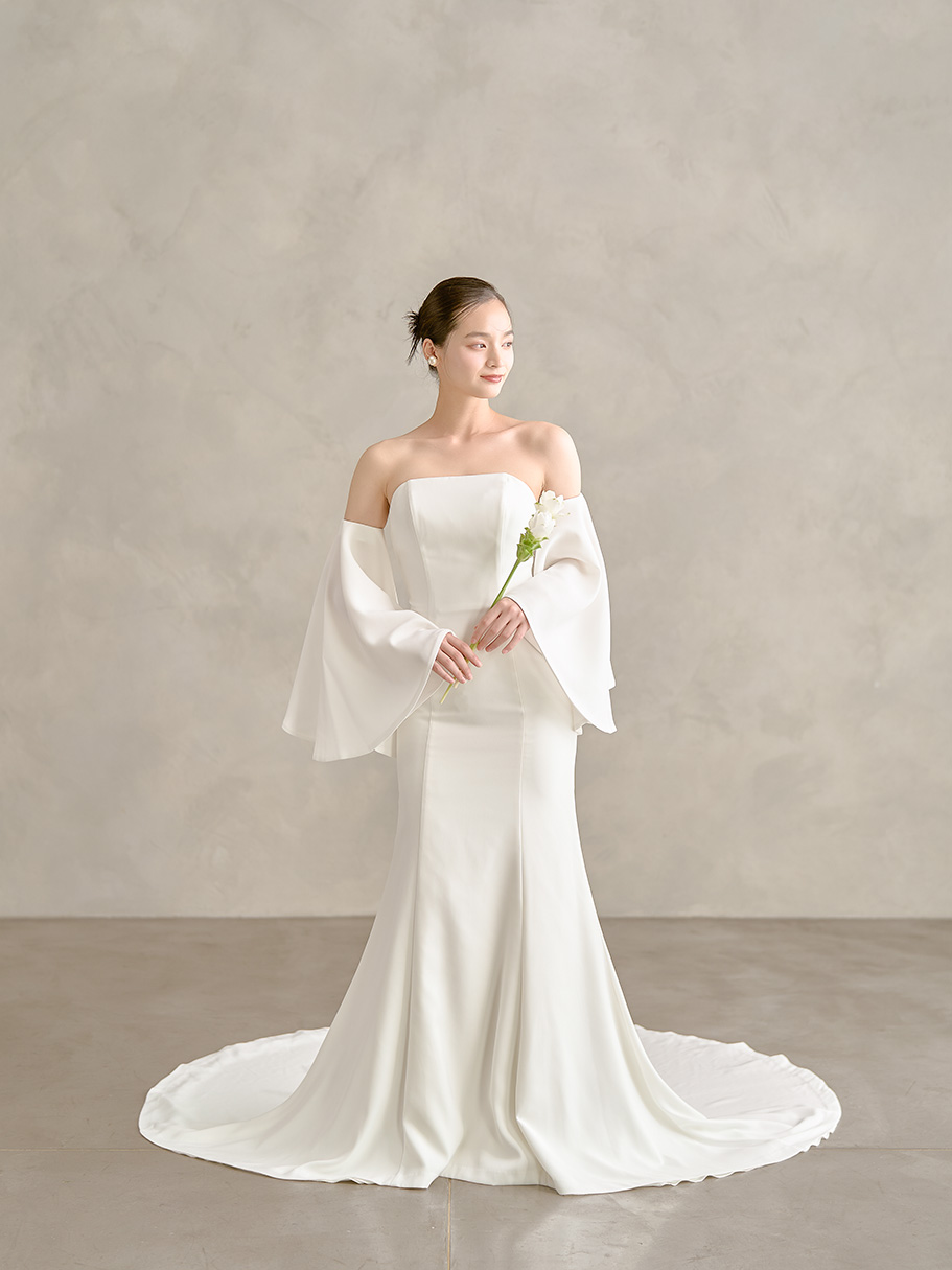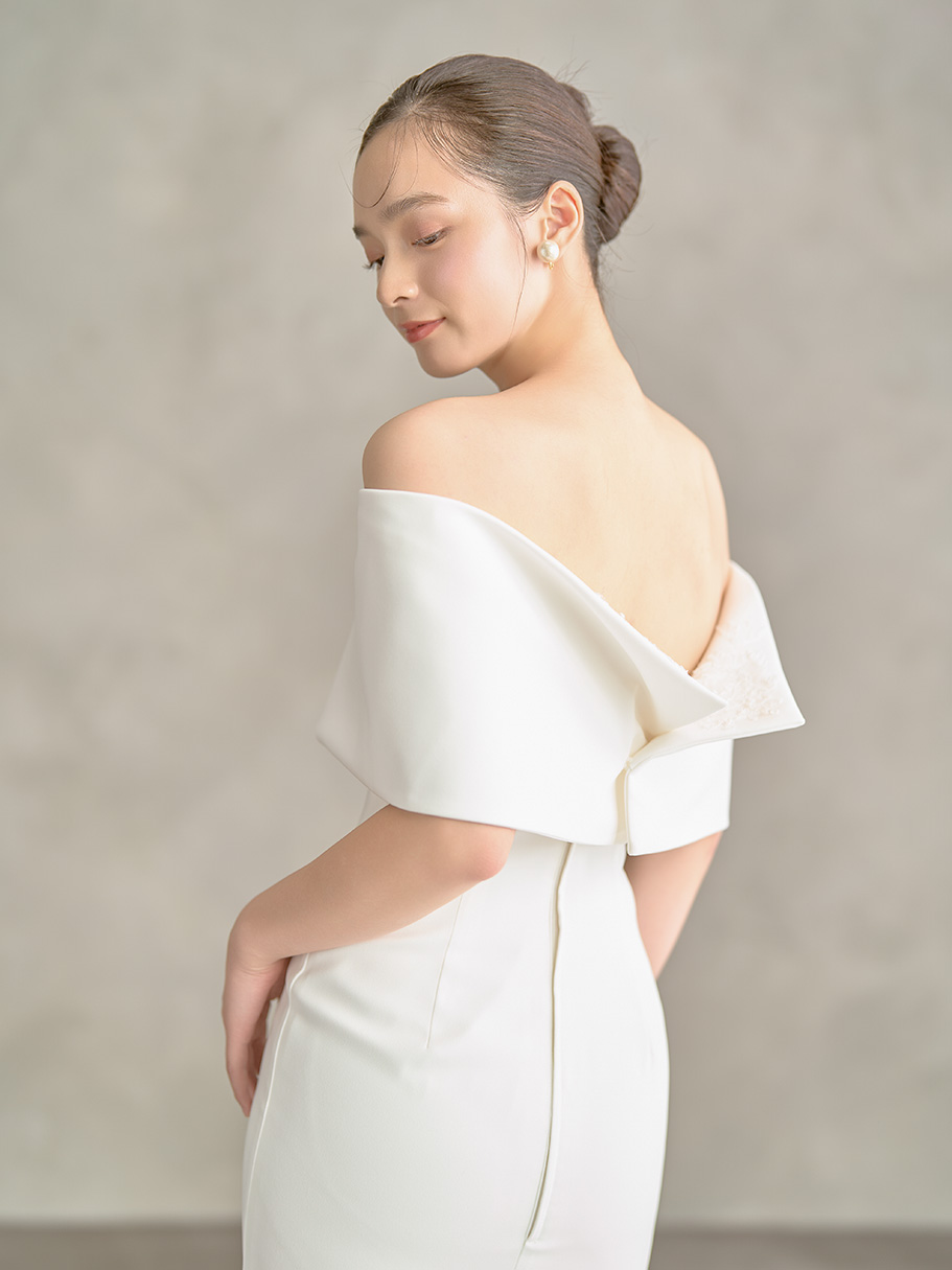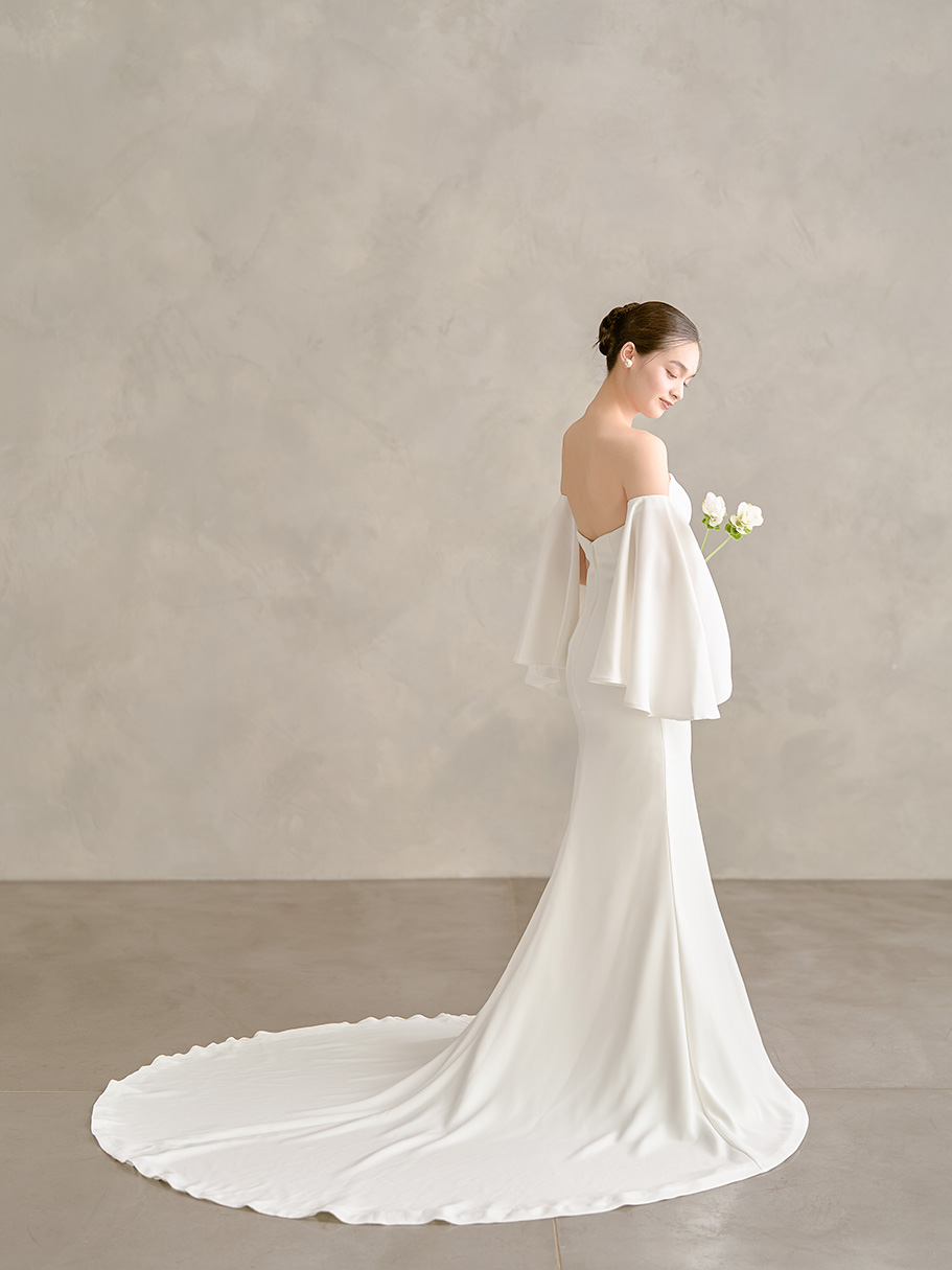美しいシルエットが際立つシンプルなマーメイドラインのドレス。