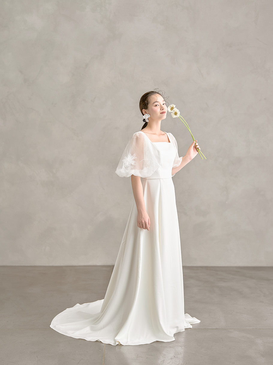 「丸み×角」「モイスト×エアリー」など相反する要素を併せ持ったドレスで