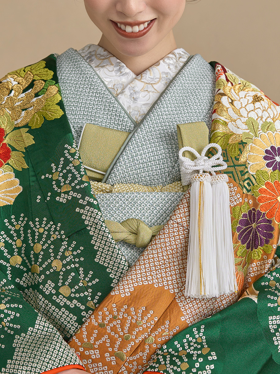 大和絵を思わせる華やかな図柄を、彩り豊かな手描友禅で表現。