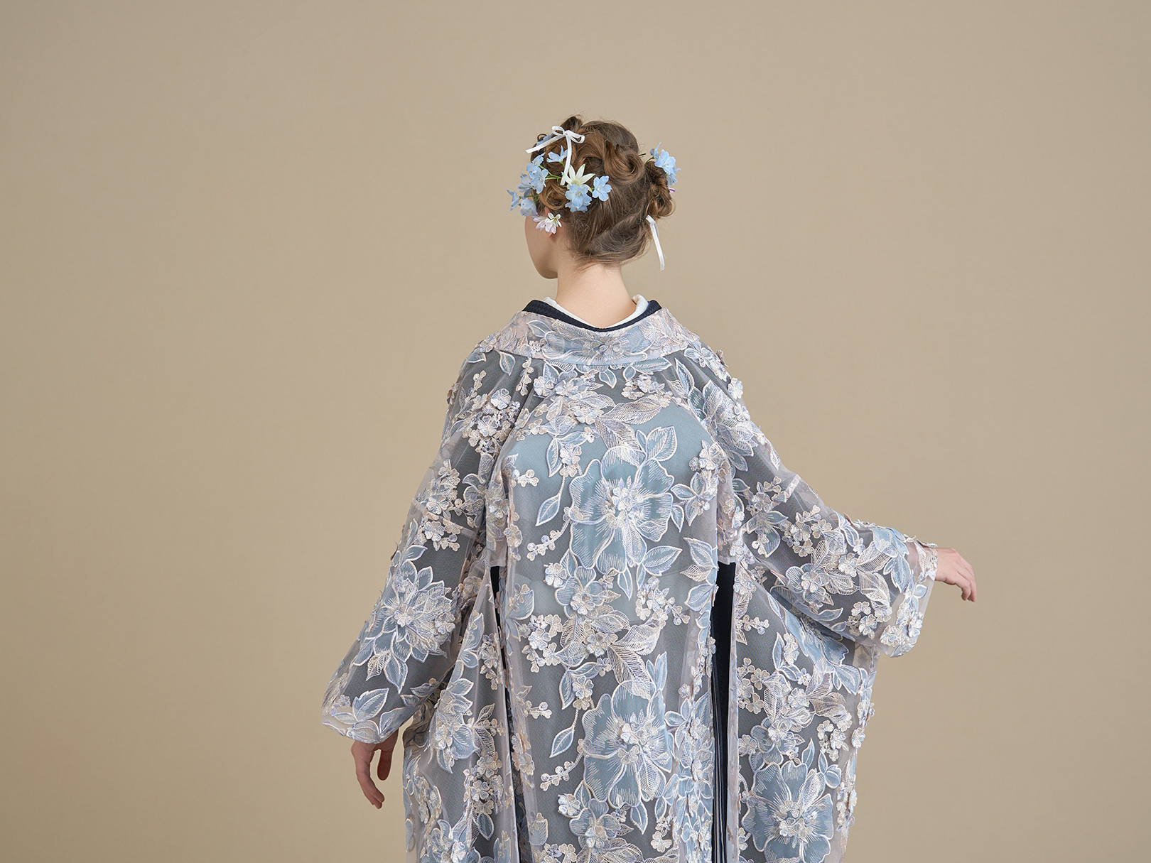 大小様々なフラワーモチーフを透明感のある美しいレースで表現。