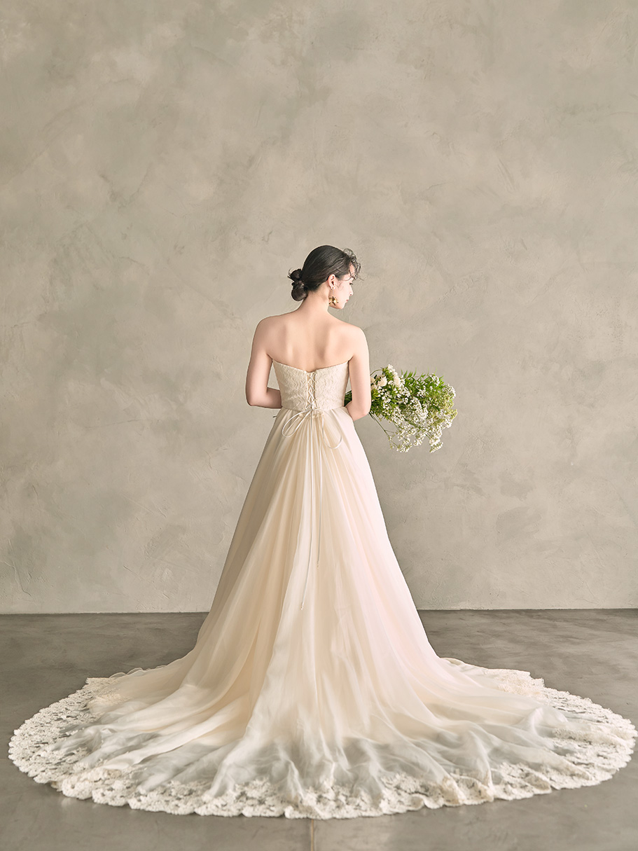 少女の様な初々しさ広がるドレスに可憐なムードを漂わせて。