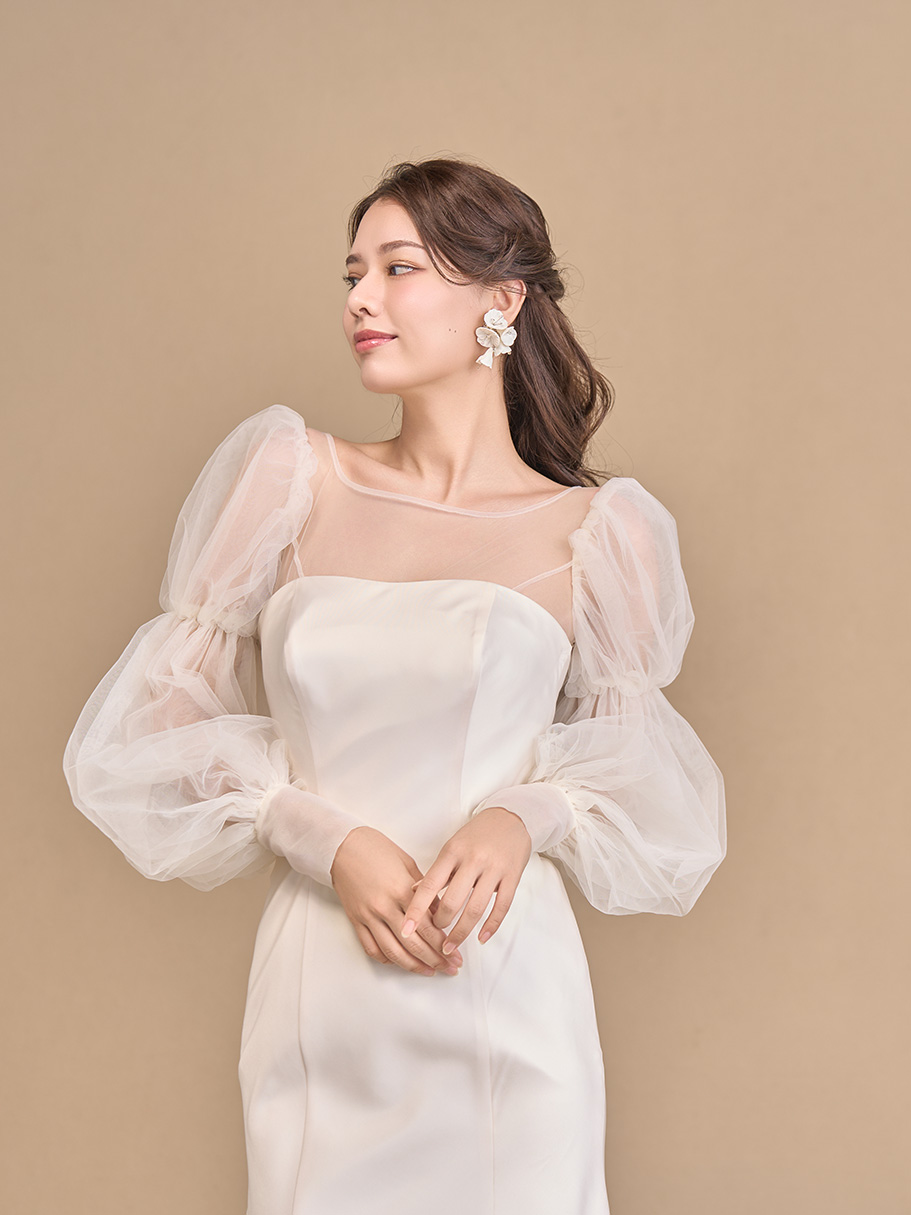 透明感を纏うチュールブラウスや、ロングスリーブ、フリルスリーブのアレンジで
