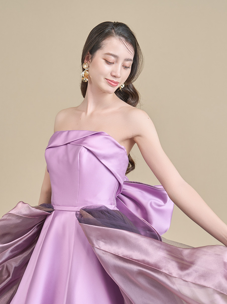 構築的なリボンの意匠が光る印象的なバックスタイルに。
