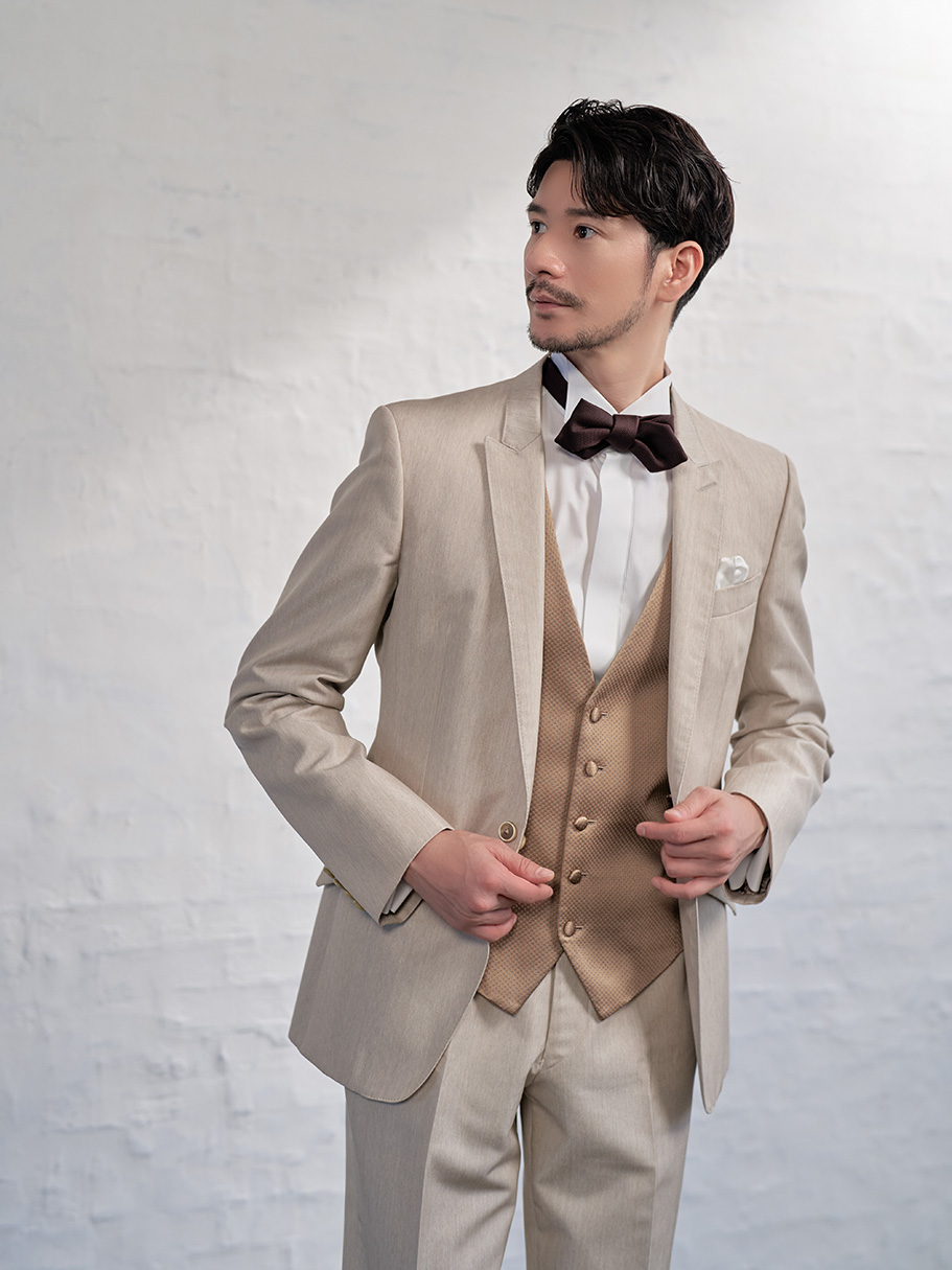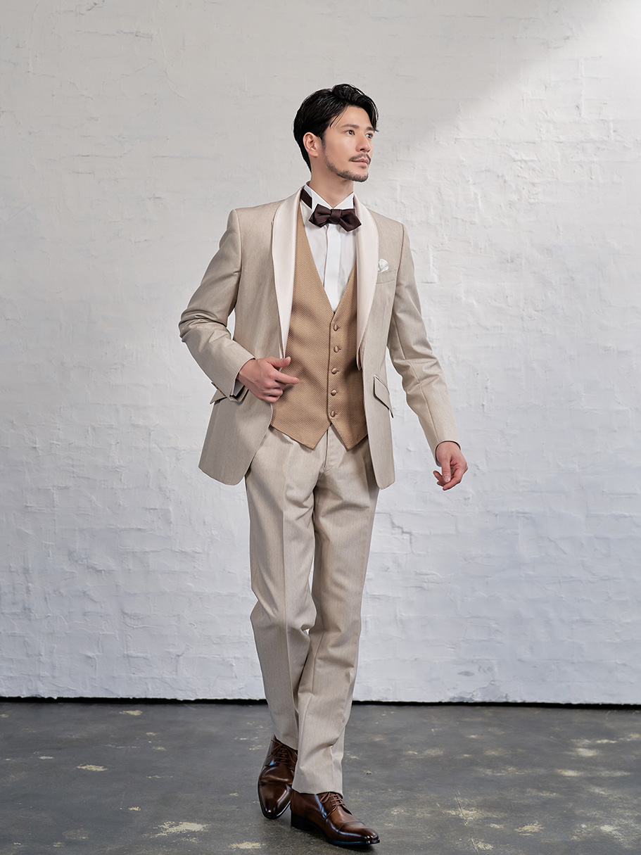 柔らかい印象のベージュで上品さが感じられるタキシード。