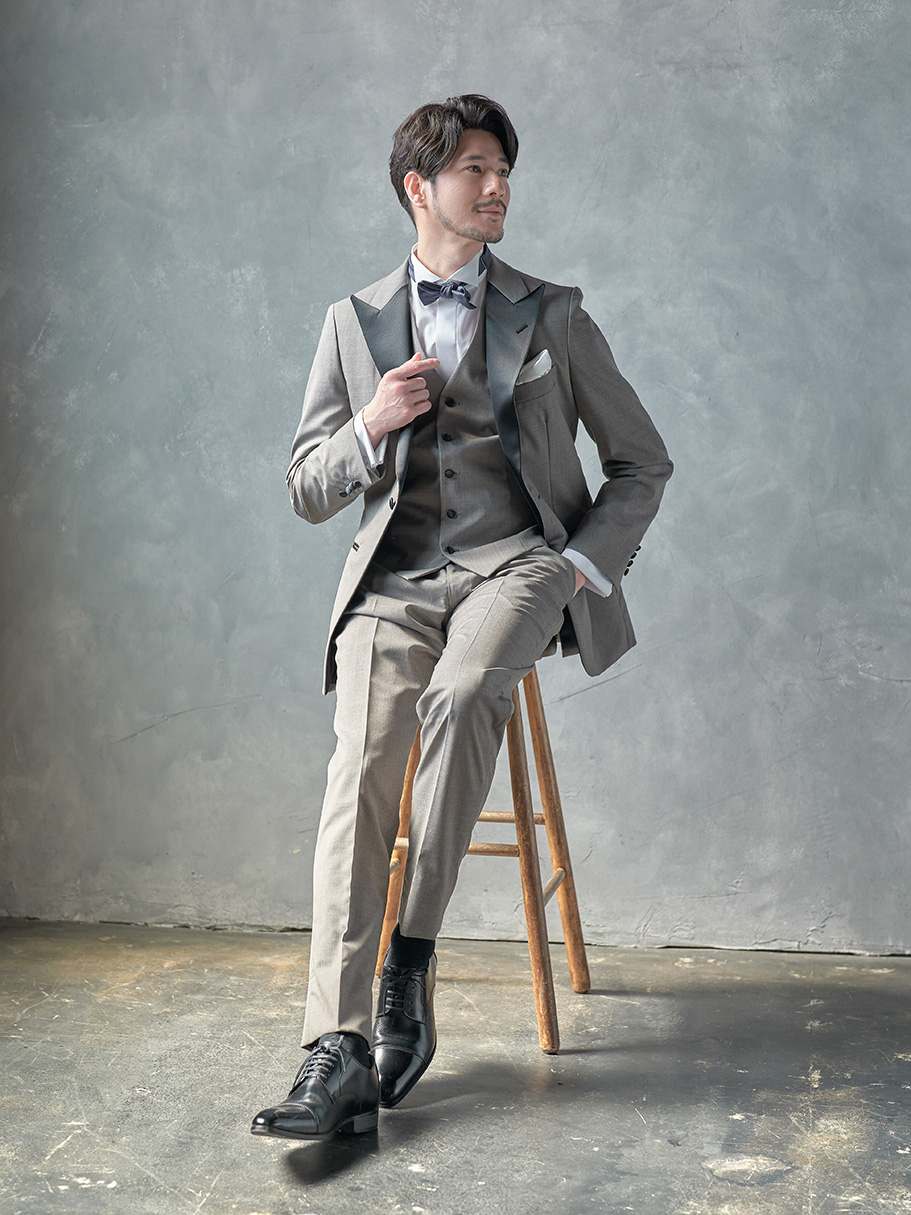 イタリア製の滑らかで肌触りの良い生地を使用したグレータキシード。