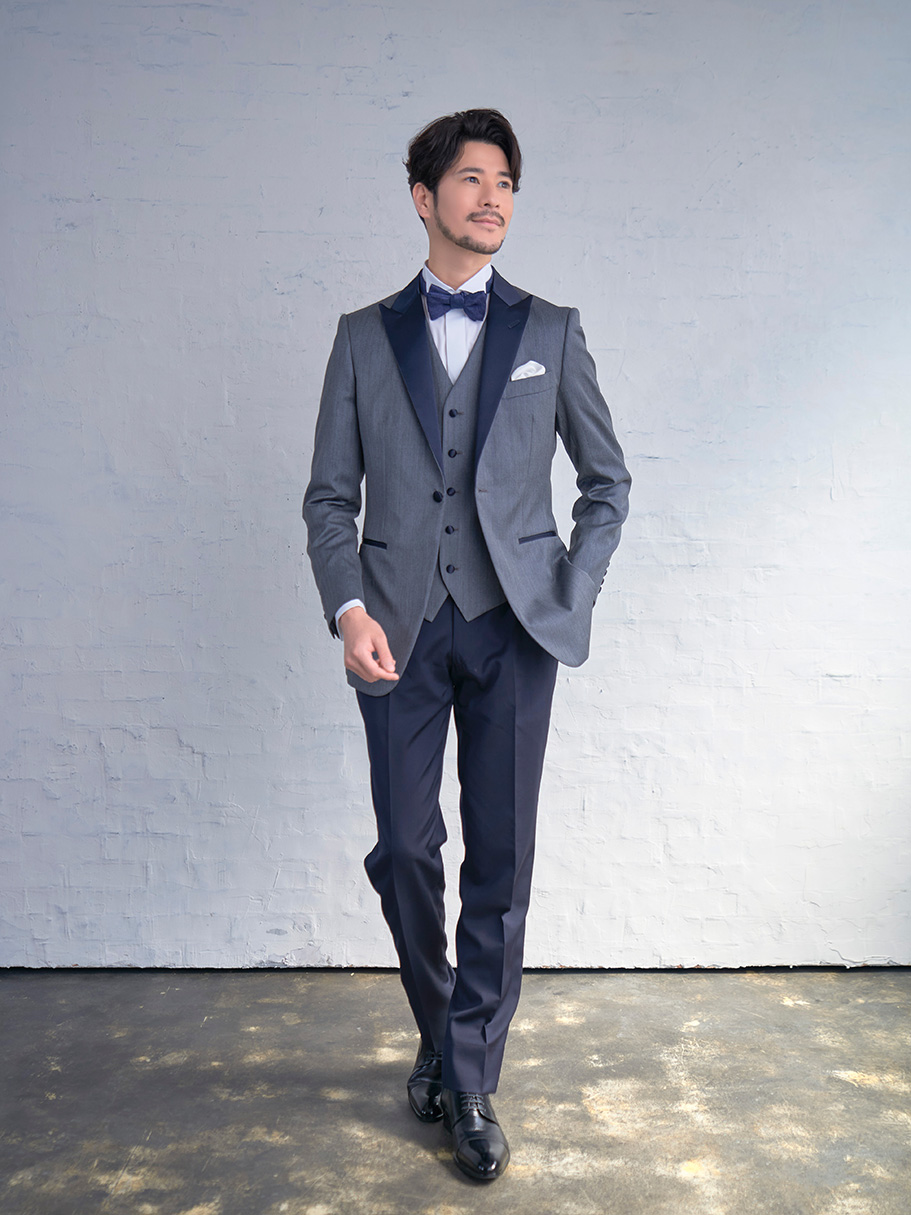 落ち着いたグレーのジャケットが柔らかさを醸し、洗練された印象に。