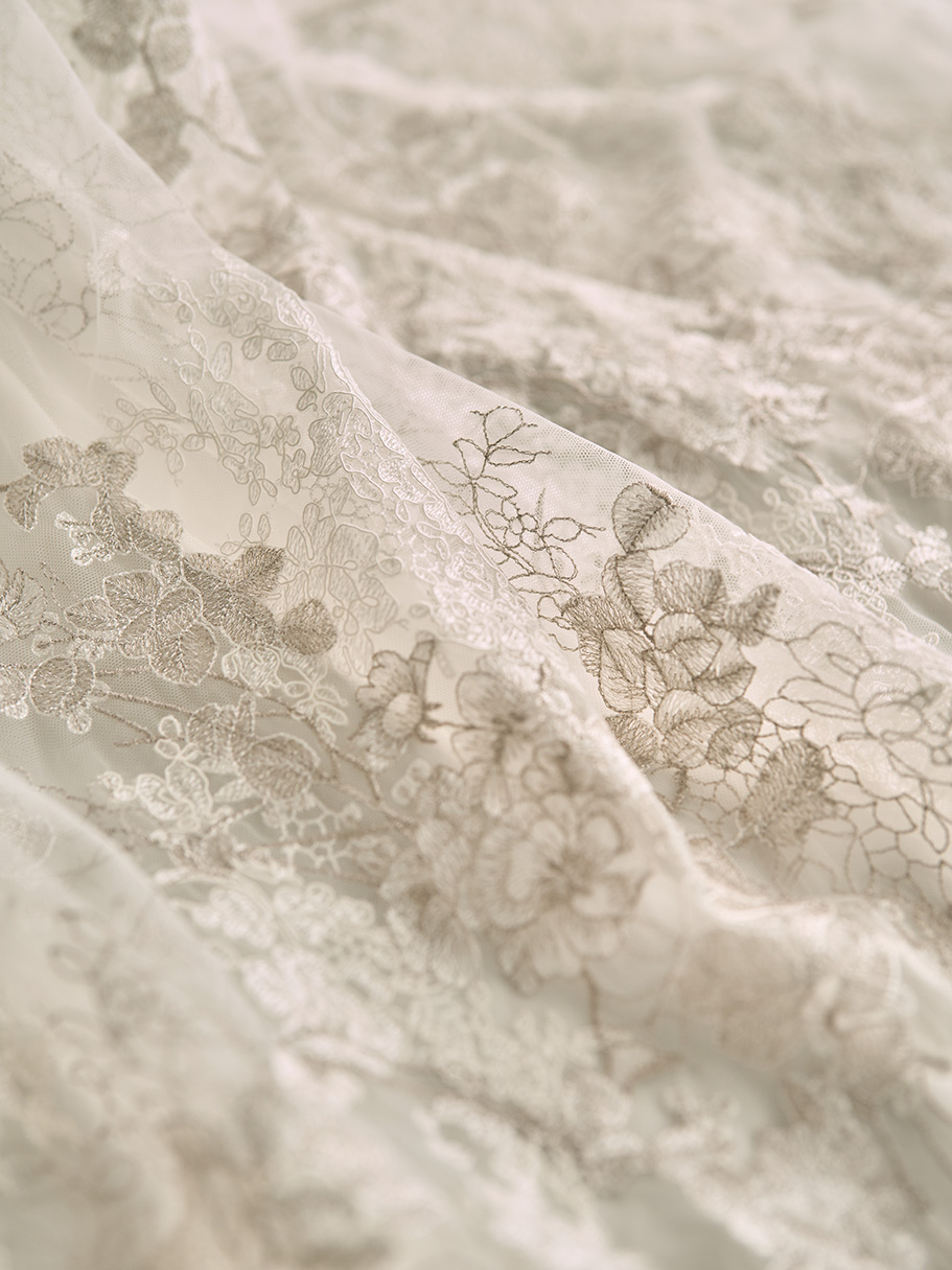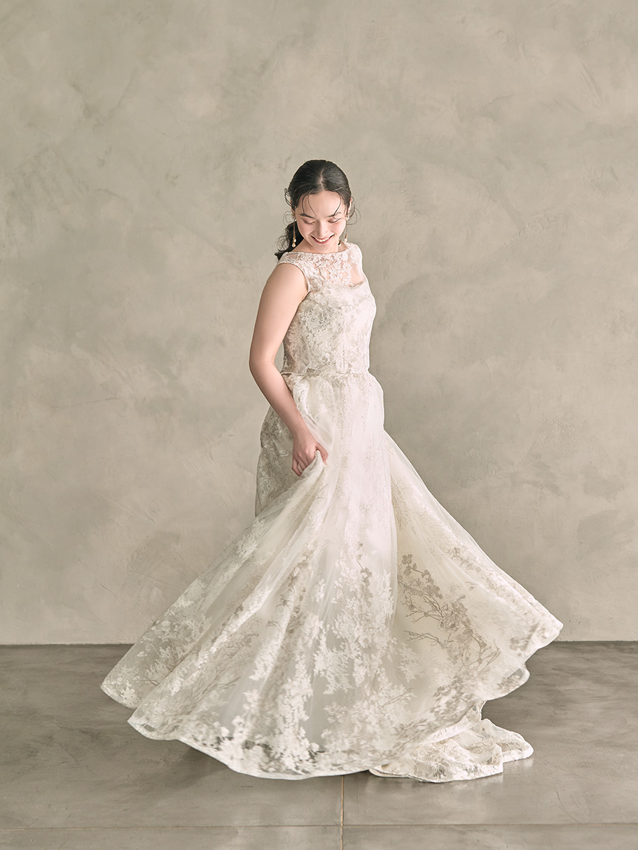エンブロイダリーレースを施した高級感あふれるソフトAラインのドレス。