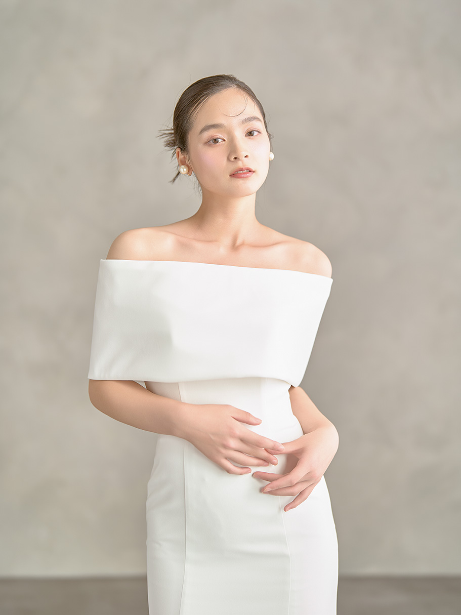 美しいシルエットが際立つシンプルなマーメイドラインのドレス。
