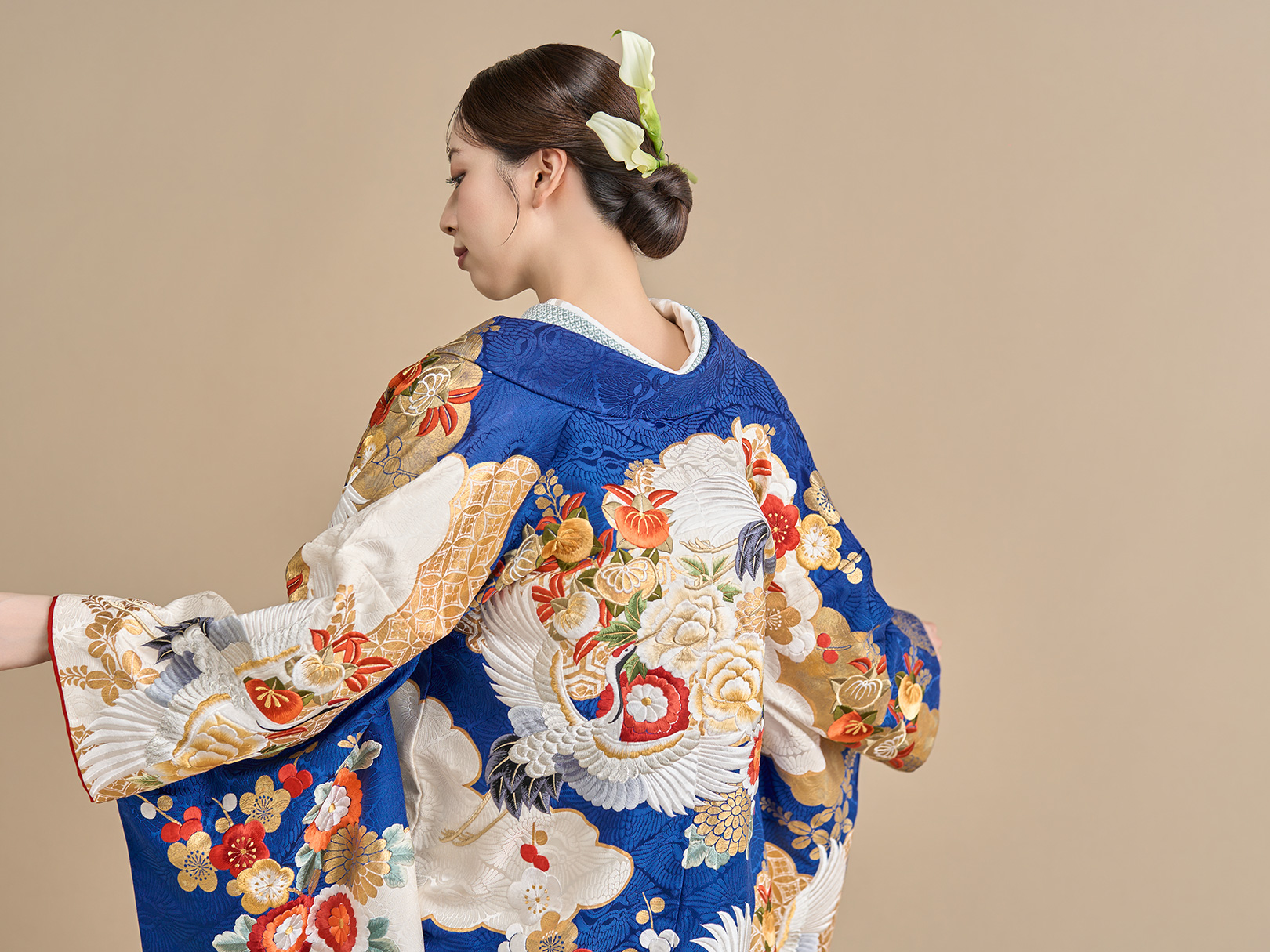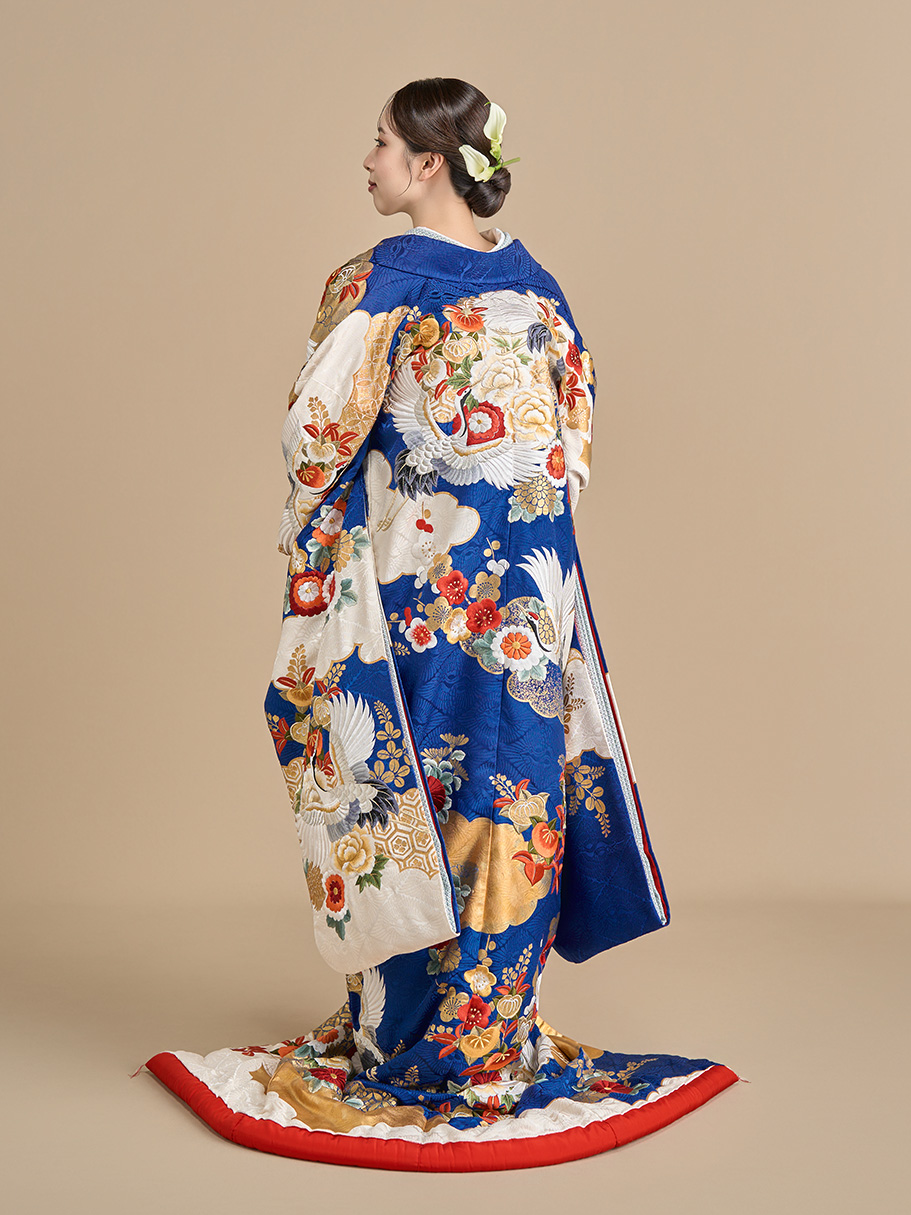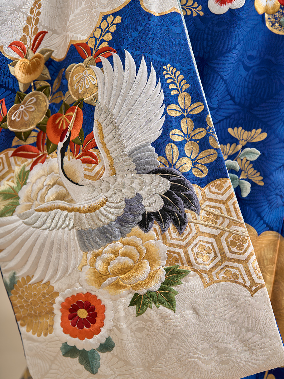 長寿の象徴である鶴と咲き誇る四季の花々を